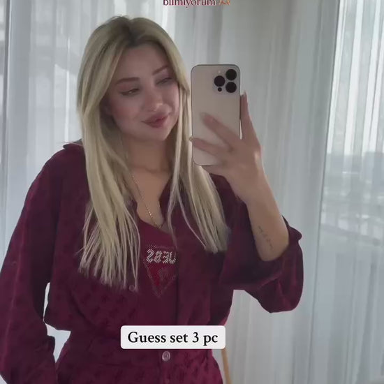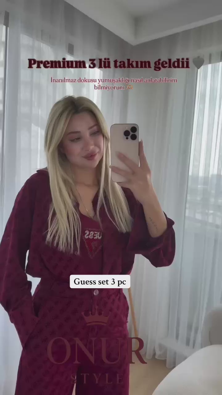 guess set طقم 3 قطع متوفر ب 3 ألوان قماش فخم والكتابة بالمخمل♥️ Set 3pc Available in 3 color (brown, burgundy, beige) Luxurious fabric, all writing in velvet ♥️ 230 dhs OnurStyle اطلبوها من الوتس المثبت في الأعلى👆🏻👆🏻 تواصلو معنا 👈🏻 Zain Fo