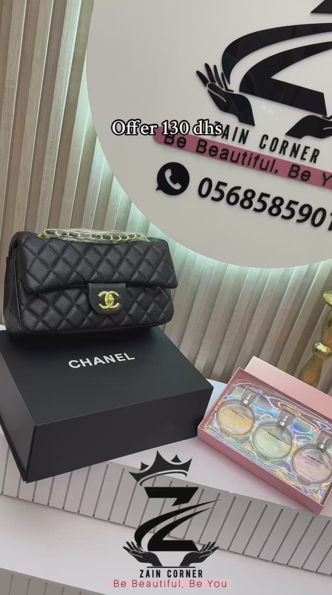 Offer 🎁 130 dhs Chanel bag with box Perfume box Zaincornerstore اطلبوها من الوتس المثبت في الأعلى👆🏻👆🏻 تواصلو معنا 👈🏻 Zain For order WhatsApp pinned 👆🏻 ♥️♥️♥️